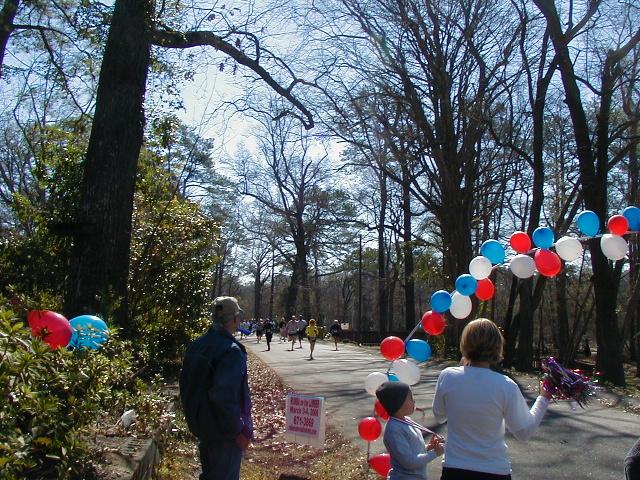 Here comes the runners while everyone cheered from both sides of the street with noise makers and yelling
