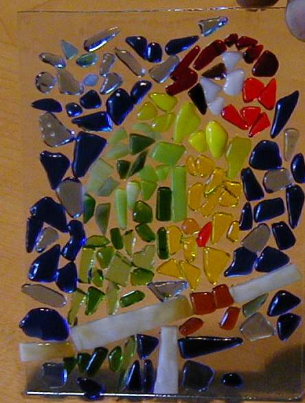 This is a little mosaic I tried fusing the colored glass onto a sheet of clear glass. It worked