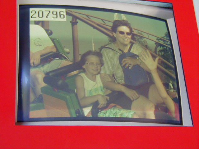 Krisitn holding the arm of a stranger on a roller coaster