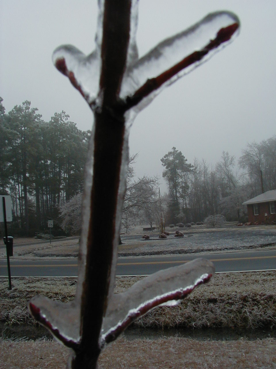 thick ice on tree branch