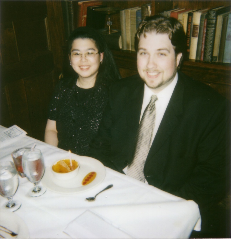 A picture of us sans Ben on our Valentines Day/Jia's Birthday/Anniversary Dinner. Funny thing was that our camera wasn't working that night. I hate having my picture taken. Imagine our surprise when we found that they give complementary pictures and a complementary monster eclair (I preferred my creme de brulee and Jimmy had a cookie cheesecake) for birthday guests. The food and service was excellent. It was a very lovely evening. http://www.donspomeroy.com/