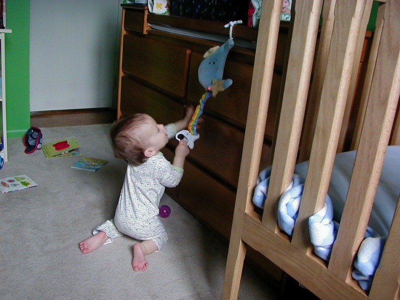 A new thing Benjamin can do is pull the handle on his musical moon to make it play.