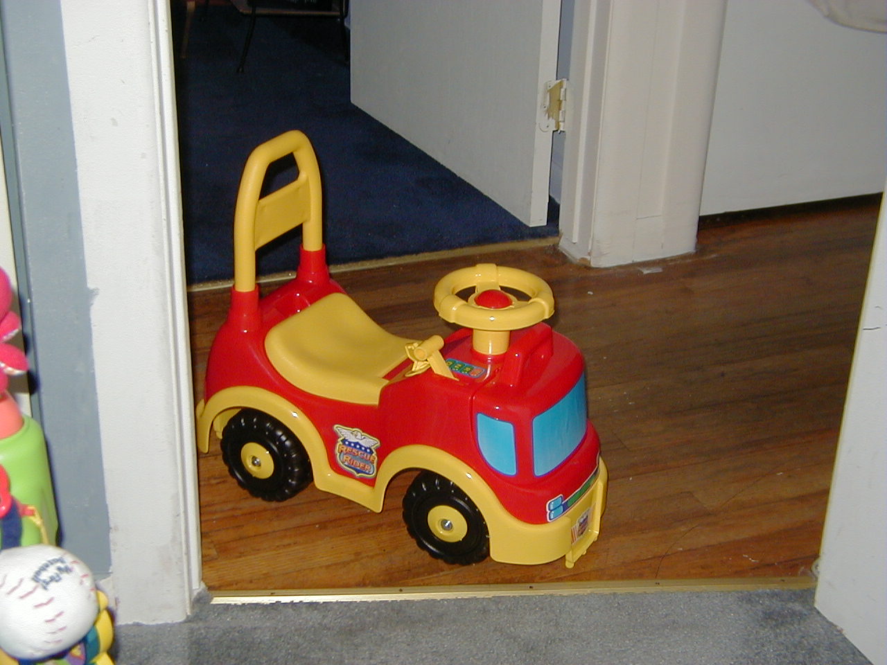 Ben's new fire engine we just got him. Bought it to replace his old jeep walker, in order to help him learn to walk.