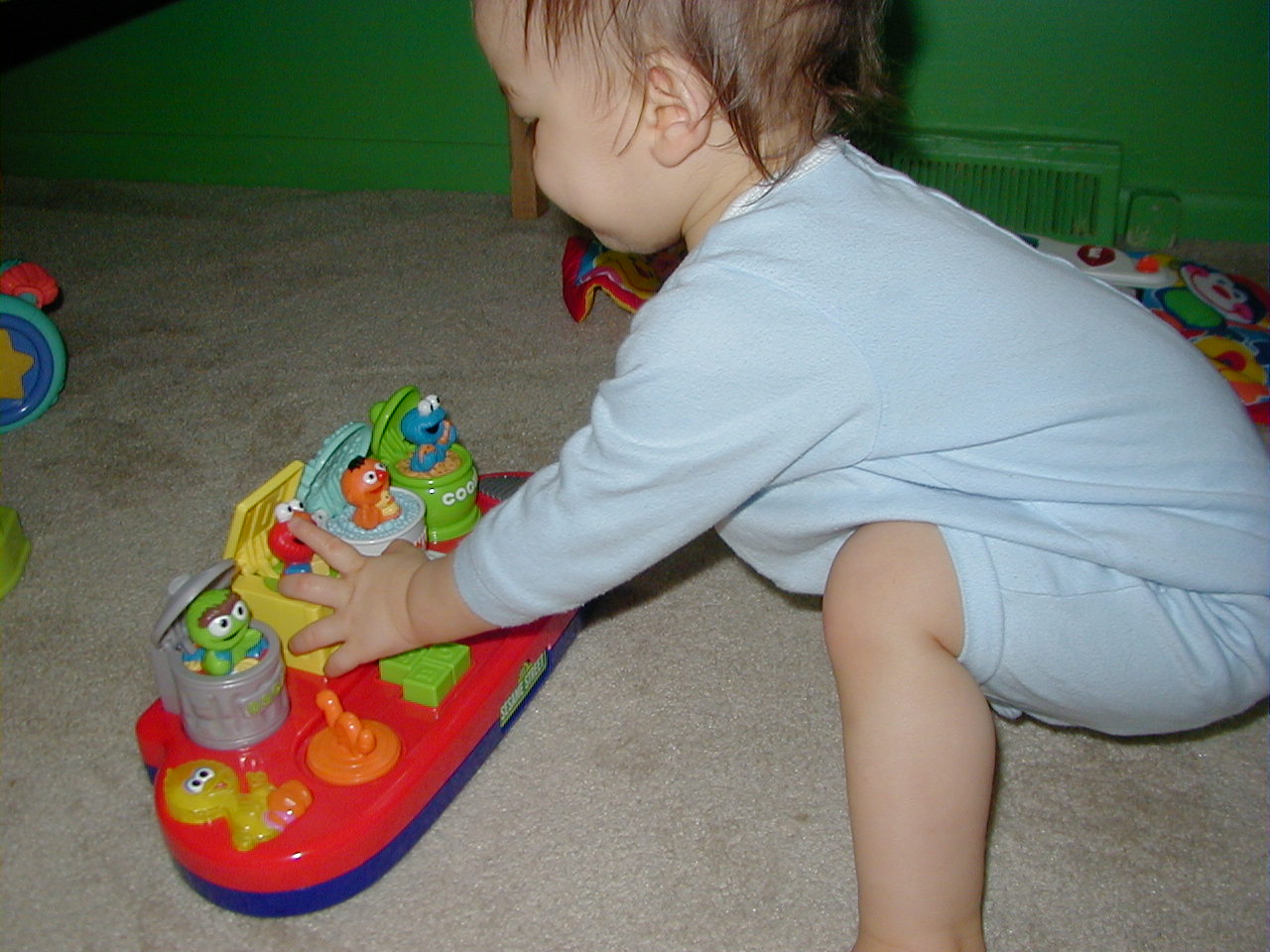 It's the Sesame Street gang. It lights up and has sound clips of each character's theme song.