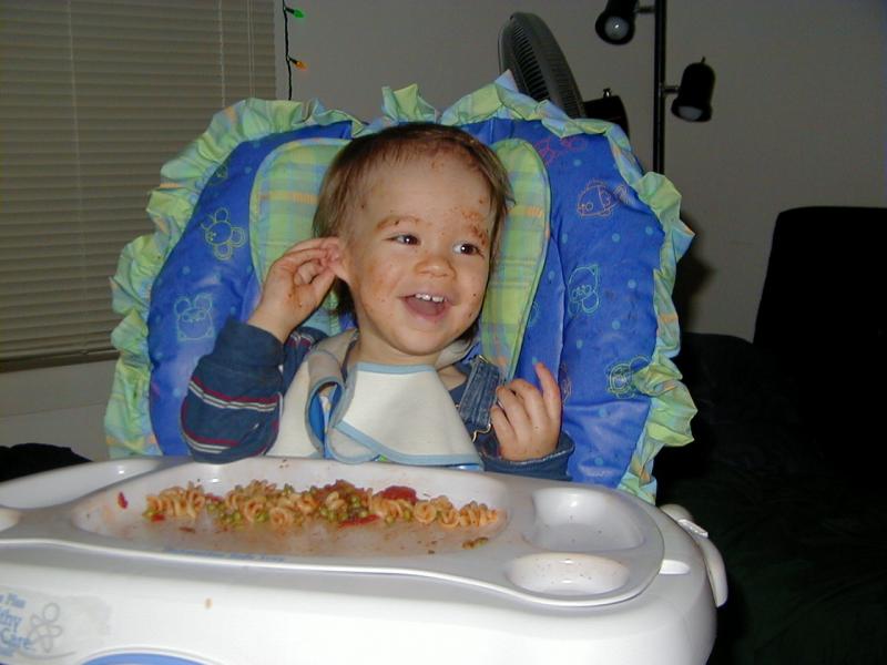 Here is Ben 'eating' spaghetti ... though most of it ended up in his hair or face!