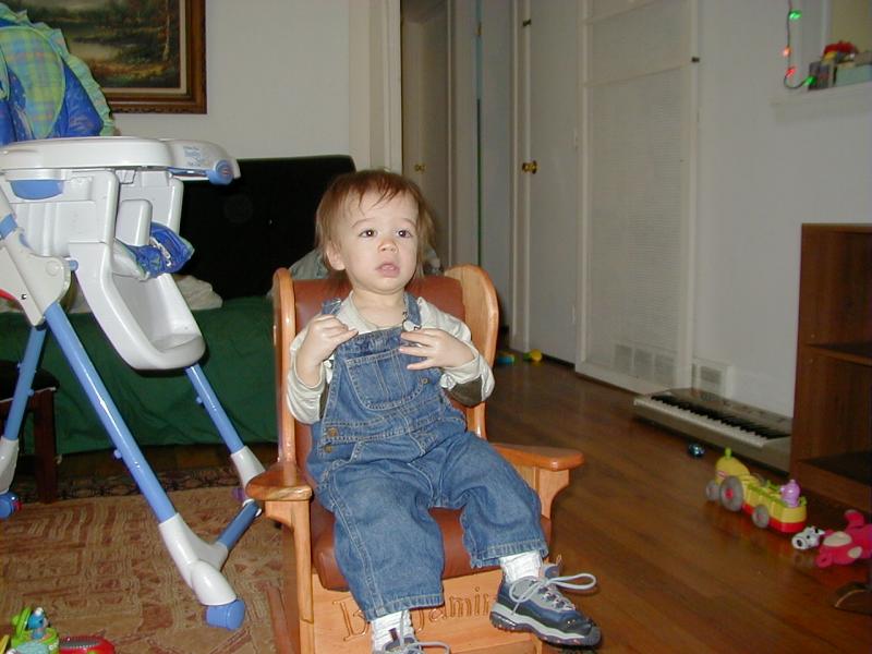 Here is Ben in his birthday chair that Grandpa Sanders made him last year.