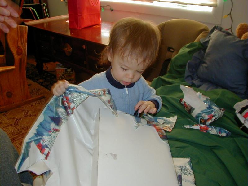 Ben unwrapping presents, his first Christmas where he did that (mostly) by himself!
