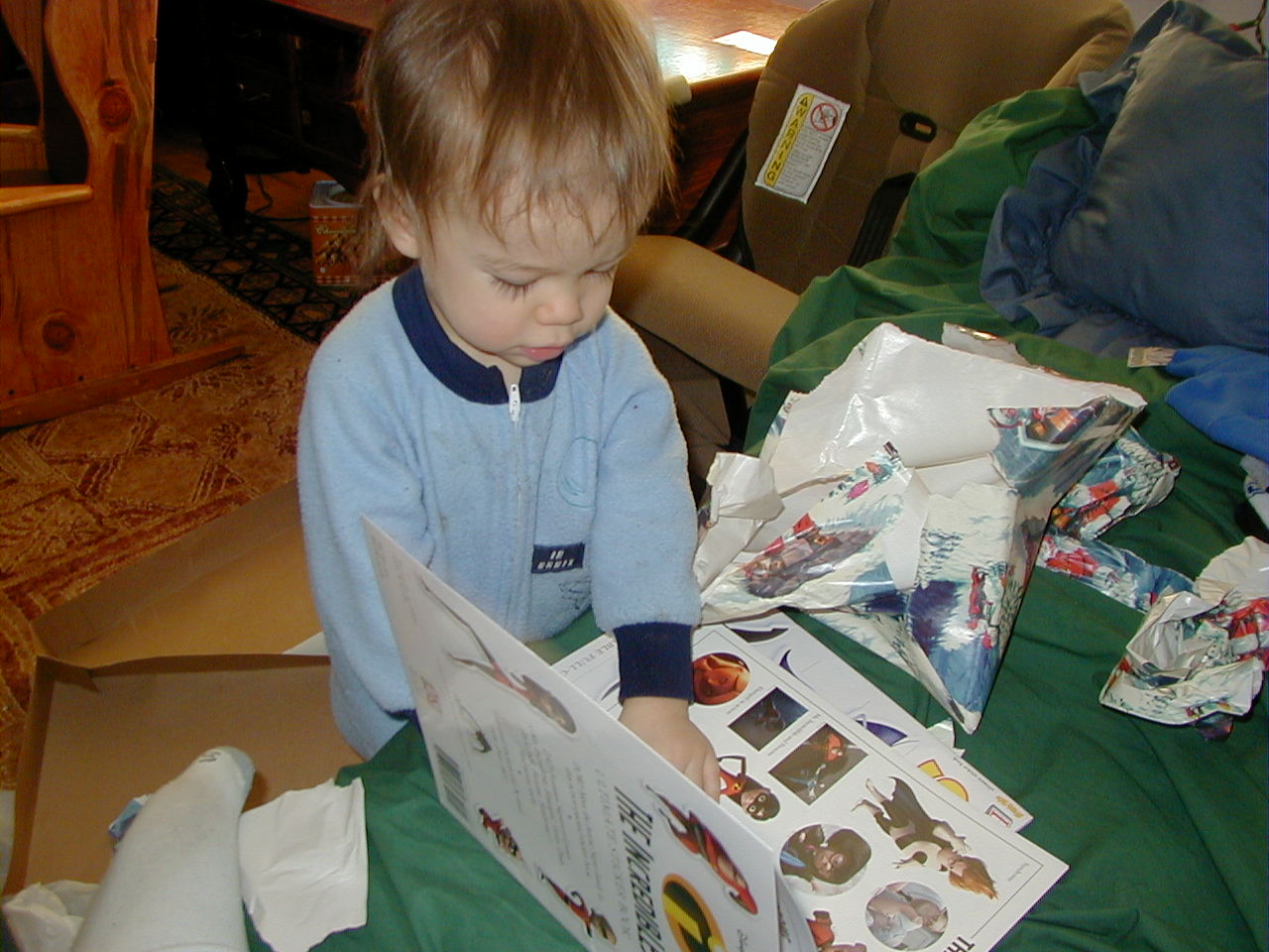 Ben unwrapping presents, his first Christmas where he did that (mostly) by himself!