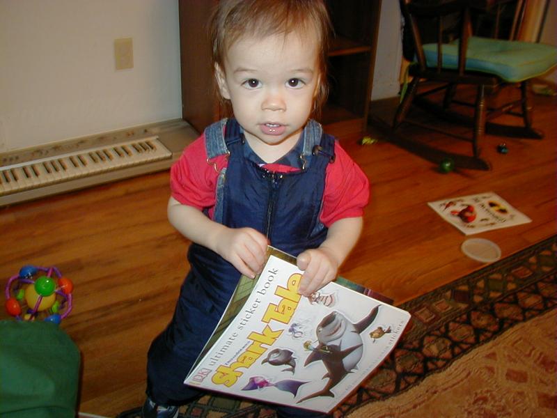 This is a sticker book he got for Christmas. We had to take it once he figured out he could remove the stickers though!