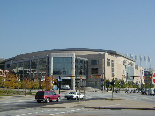 This is the Gund Arena, where the Cleveland Cavaliers play. Remember when they used to play professional basketball before all the players decided they weren't rich enough? Well should basketball ever come back, this is where our local team will play. ;P Incidentally, it is right next door to the "Jake", or Jacob's Field, where the Cleveland Indians play. It was too far away to get to though, so no picture yet.