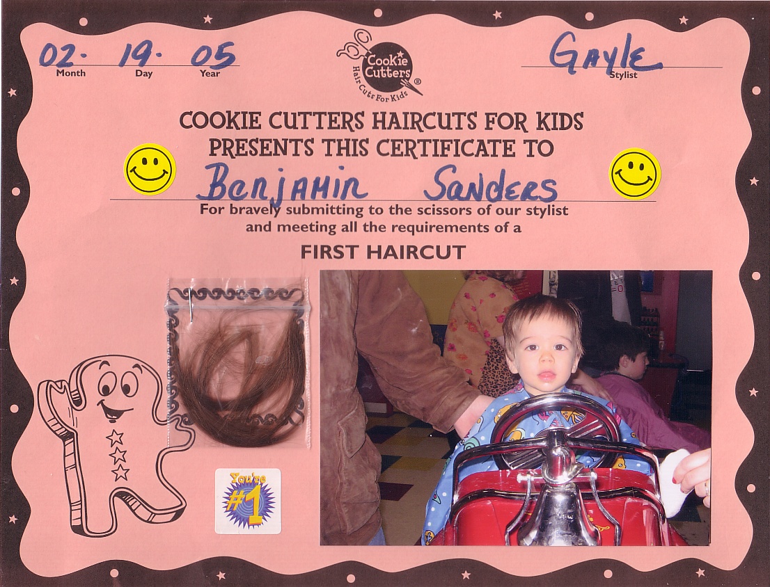 First Haircut. He was awesome at this place which was awesome for kids. There's a big playset with a slide inside. There are four seats with game consoles for kids to play with while they had their haircut and four vehicle seats for little ones to ride in while they got their haircuts. Ben was red hot in the firetruck as you can see. Not one tear fell from him while he got his new look. Good Job Ben!