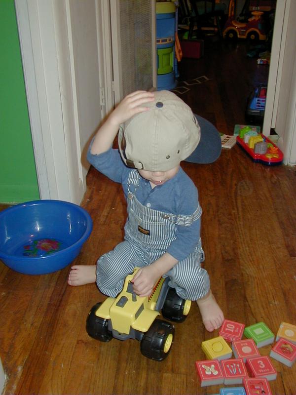 This is how Ben wears a hat! haha (He thinks it will fly off I guess ...)