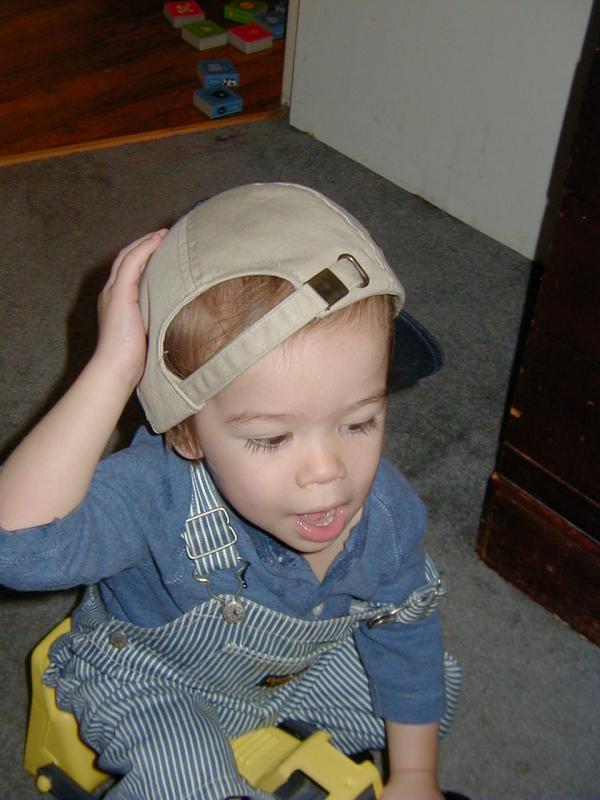 This is how Ben wears a hat! haha (He thinks it will fly off I guess ...)