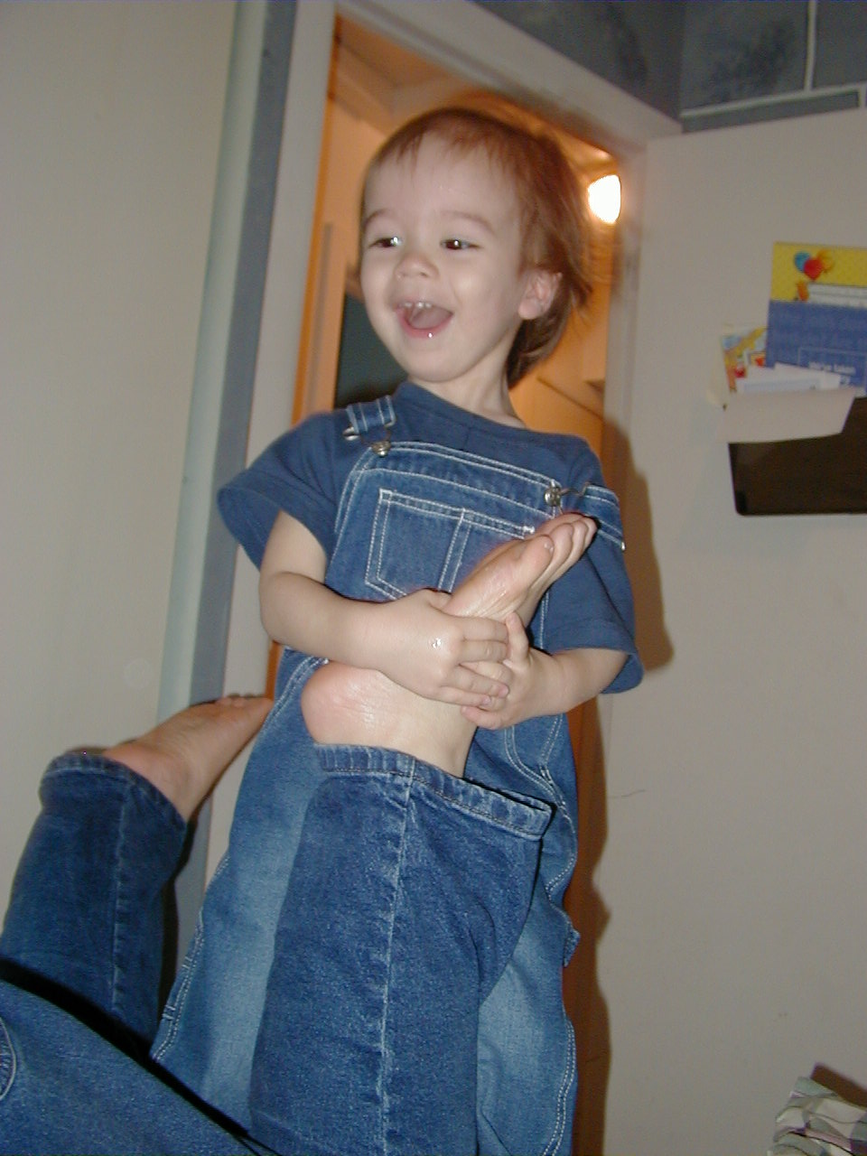 Ben loves feet for some reason, he was grabbing Mommy's leg and jumping with it! haha