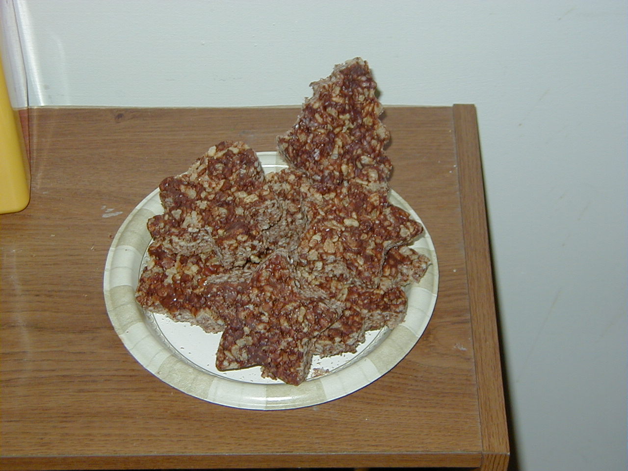 Christmas cookies! These are delicious chocolate rice krispie shapes! It's hard to see but there are trees, stars, stockings, and gingebread men.