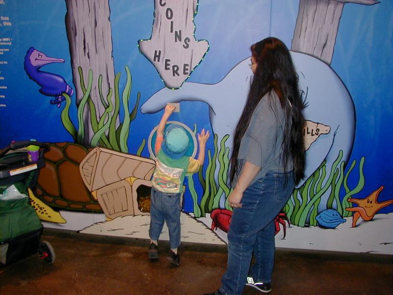 Ben and Mommy donating coins to help save the Manatees