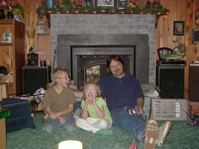 Christmas Day (for us anyway! hehe). Dad and the kids, getting ready to rip open some presents!