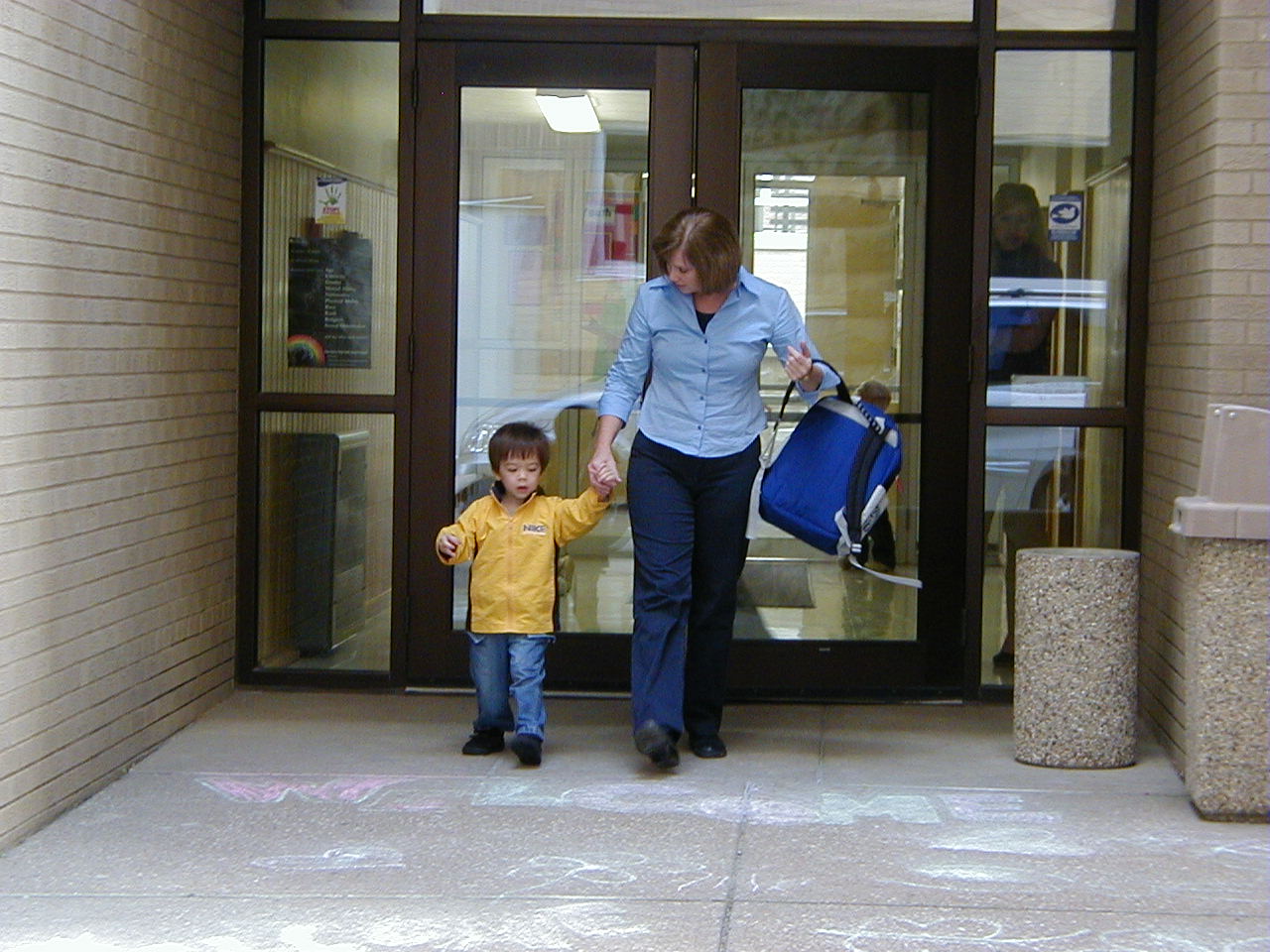 Here's Ben walking with Mrs. Hebble from preschool to mommy who is waiting for him in the van. He goes to the First Congregational United Church of Christ Preschool in downtown Elyria. It's a very beautiful and secure church. You have to be buzzed into the building if you are late for drop off or pick up.