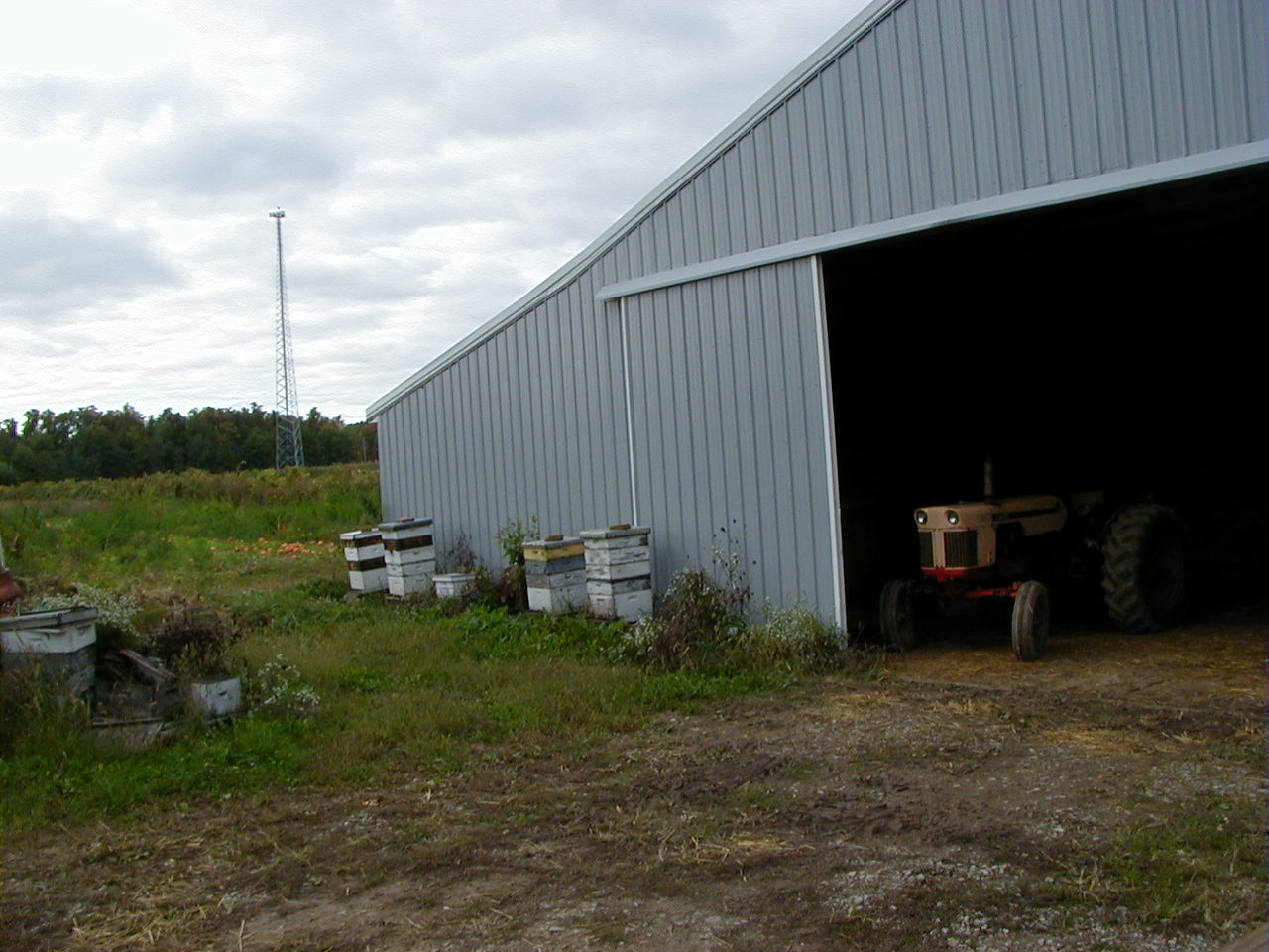 The farm also makes honey. Those boxes are beehives. They were currently dormant.