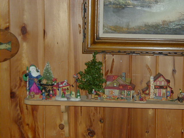 The left half of Mom's tiny village that sits above the couch.