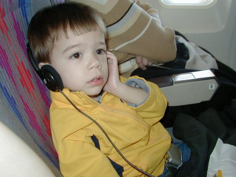 Ben listened to the in flight radio almost the whole flight there. :)