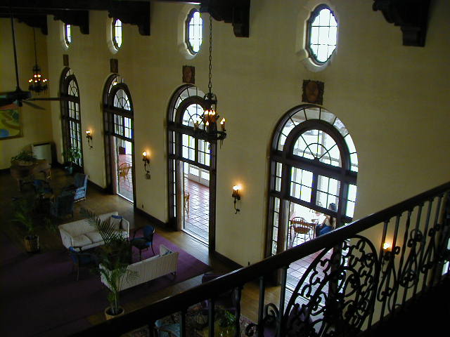 This is looking down into the main lounge area of this very old Inn. If you look close you can see Jia eating breakfast in the continental breakfast area. :)