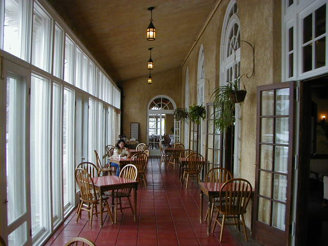 This is the breakfast area where every morning they served us a continental breakfast, free of charge. Jia is chowing down on a bagel or something! ;)