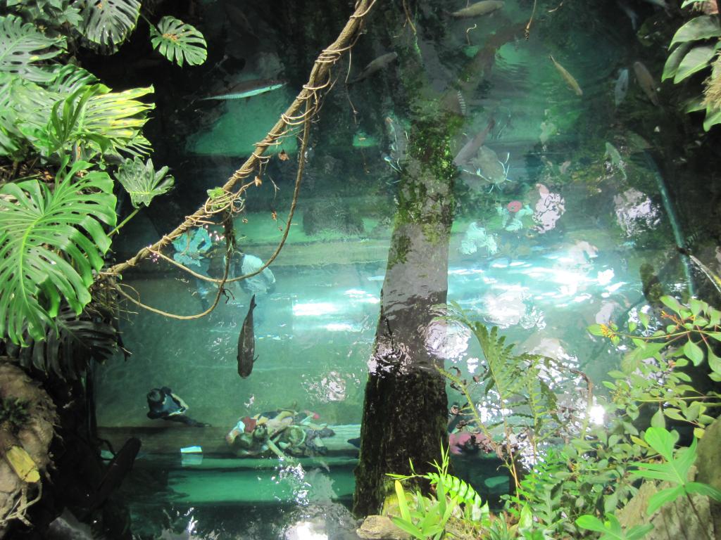 It's hard to tell, but in this picture we are looking down into the top of an aquarium, that itself is the ceiling of another lower level. Later on we will be down under there!