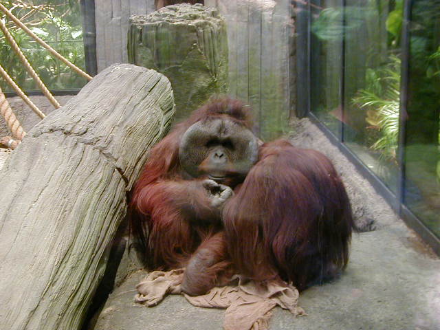 This was a very large closed in area for these Orangutan's to play in. However they looked awful bored to us.