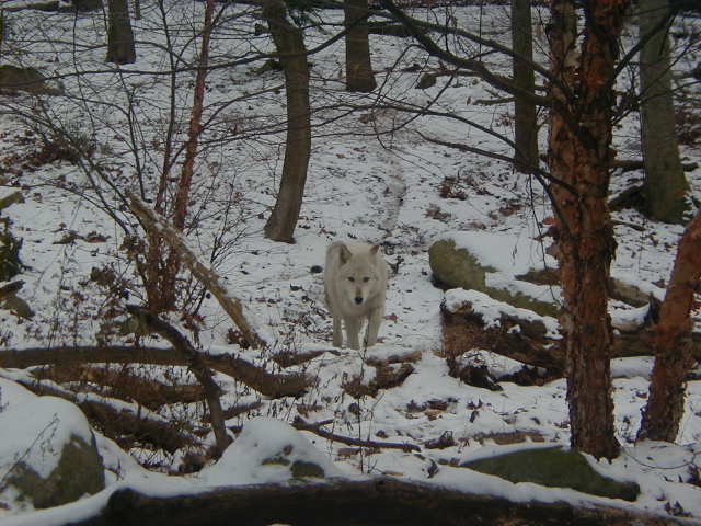 These pictures are actually taken from inside a (WARM!) building which overlooks this wolf reserve.