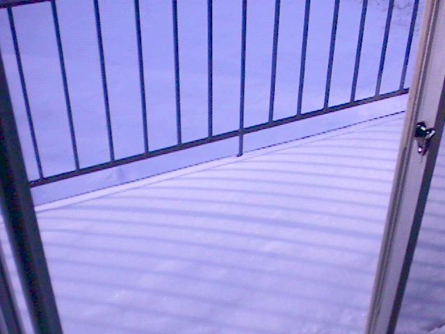 I shot this to show you how much snow had accumulated, but you can't really tell from the picture! Anyway, this is looking down at our deck, which is right outside the bedroom. It's at least 5 inches thick!