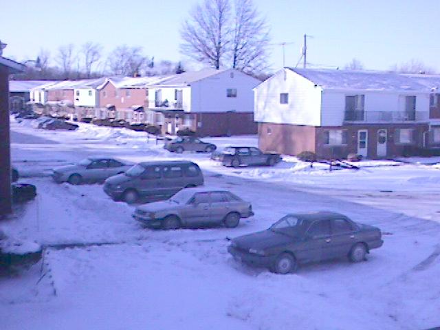 These are looking out the bedroom window into the complex. That first car you see is our Toyota! As you can tell, it snowed just a tad while we were away!