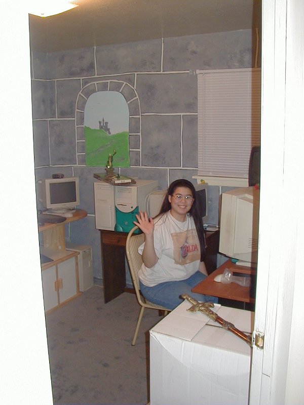 Jia and her side of the computer room. The sword will eventually go on a wall somewhere in here. :)