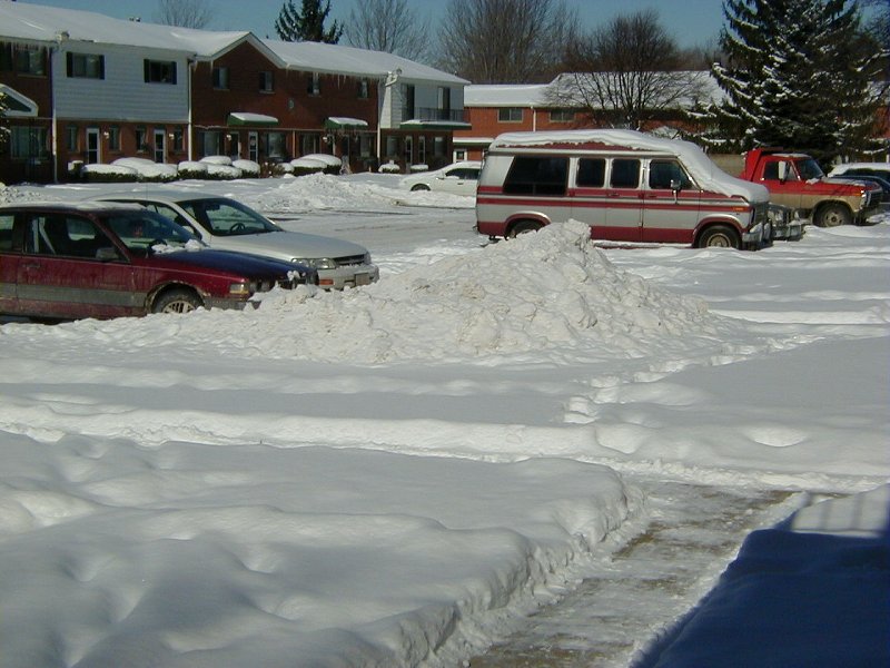Here is a sample of some of the huge snow piles made by the snow plows. The apartment complex was filled with them all over.