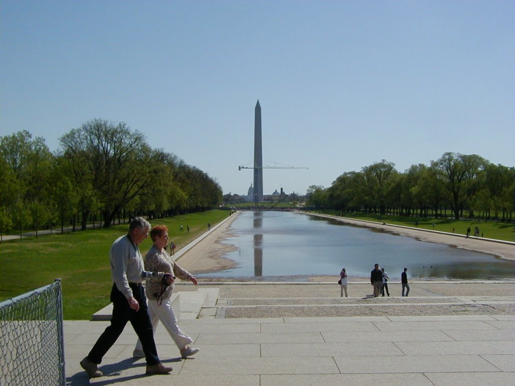 This is a view of the Reflecting Pool and Washington Monument from the steps of the Lincoln Memorial
