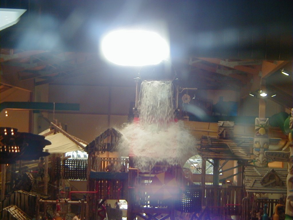 Every 2 minutes or so a HUGE bucket at the top of the park fills with water and dumps out onto the awaiting crowd! It looks like a lot of fun