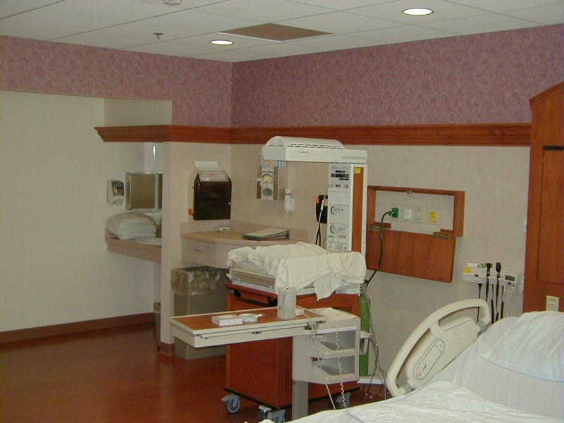 There is the baby warmer/measuring table. Right after he was born he was cleaned up and moved onto that thing to warm him up and stuff.