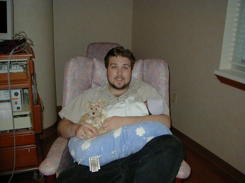 Jim holding the baby. Did quite a bit of this so Jia could rest. He is daddy's little boy! :)