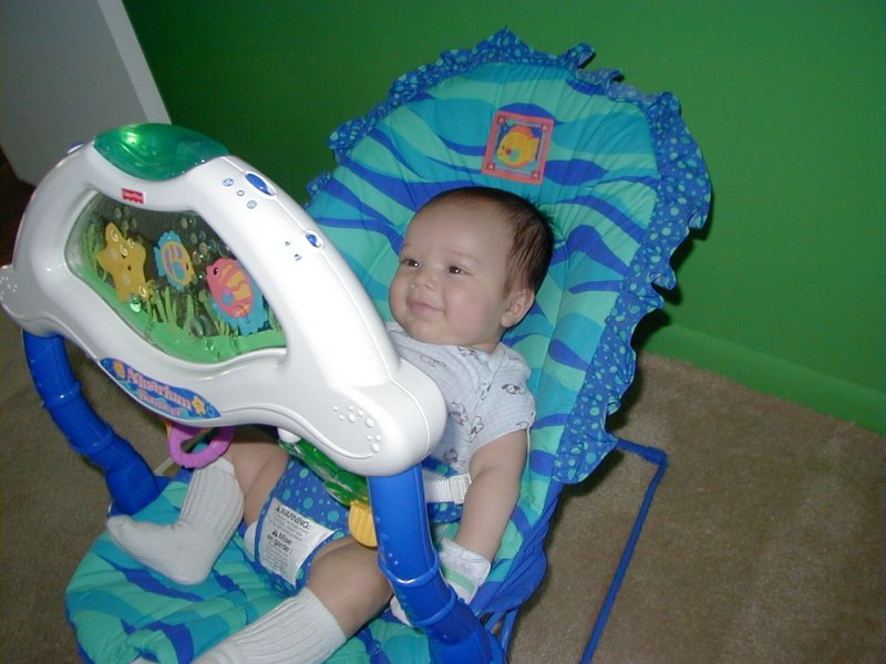 Well technically this wasn't the very first time he set off the bouncer, but it's the first time I caught it on camera. He loves his Aquarium Wonders Bouncer!