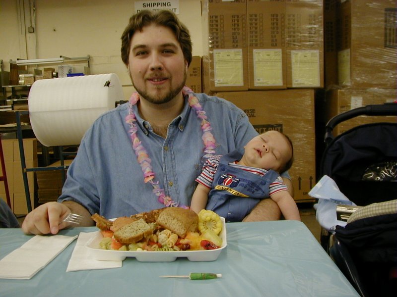 Good food at the Luau. Benny is taking a morning siesta before his feast!