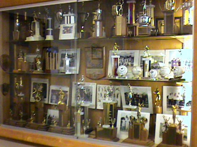 This is a trophy case somewhere in NASA. It holds all kinds of sports related trophies. I think Jia was going to try out for the football team or something! haha