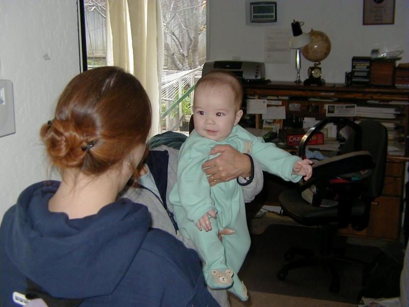This is at Lisa's parent's home. For about 10 minutes her mom held Ben up in front of Lisa and he was just laughing and having a great time!