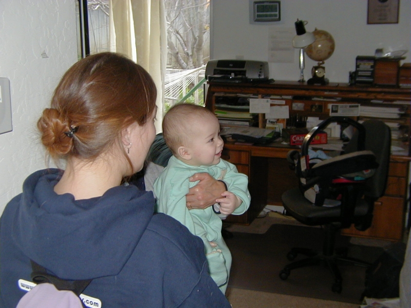 This is at Lisa's parent's home. For about 10 minutes her mom held Ben up in front of Lisa and he was just laughing and having a great time!